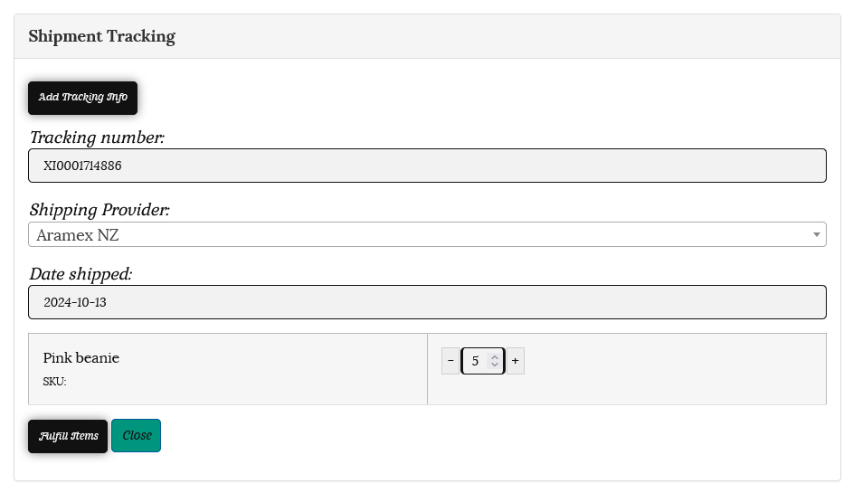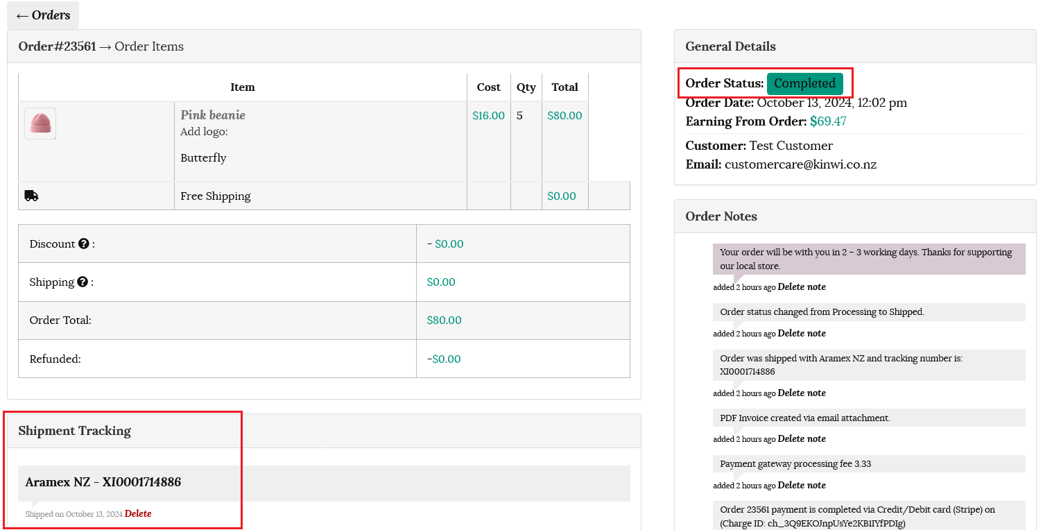 The shipment tracking will now show on the order details and the order will show as completed.