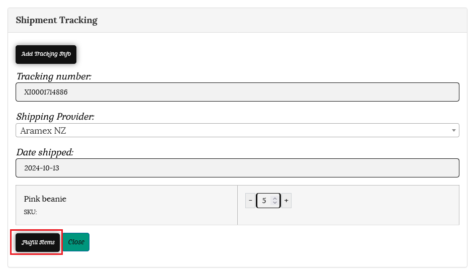 4/Once you have completed the details, click on the “Fulfil Items” button.