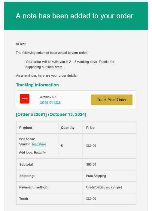 You are able to add either a private note, or a customer note at the bottom. If you add a customer note, the details will be sent directly to the customer once you click on the “Add Note” button.