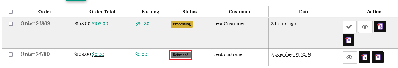 If you have processed a full refund you can change the order status to “Refunded” to give refunded orders visibility on your order list.