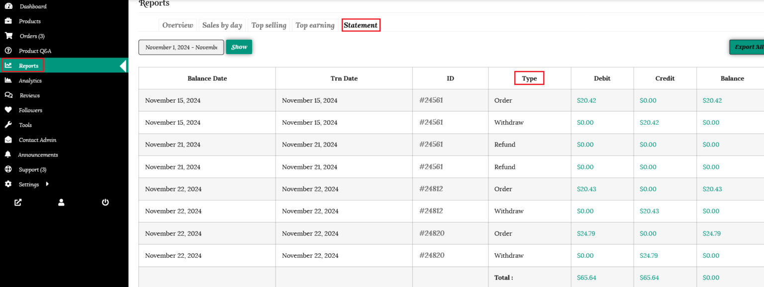 Refunds will be listed in your statement, under the “Reports” tab in your dashboard.