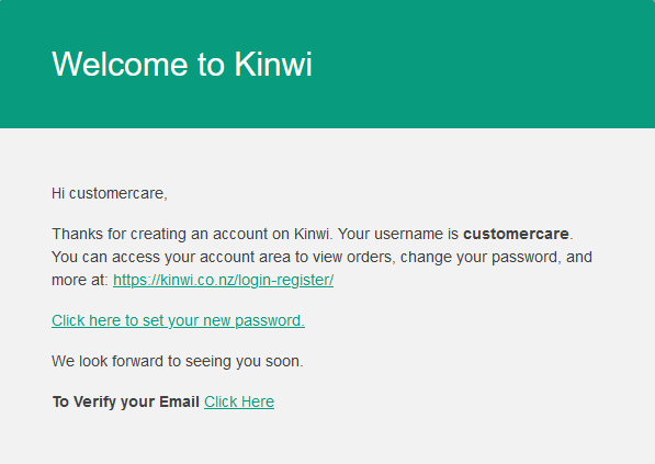 Please check your email and click on the link in the “Welcome to Kinwi” email to verify your email address.