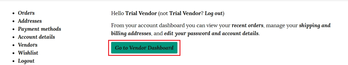 Once you have created a new password for your account you can log in anytime and click on the “Go to Vendor Dashboard” to access your store.