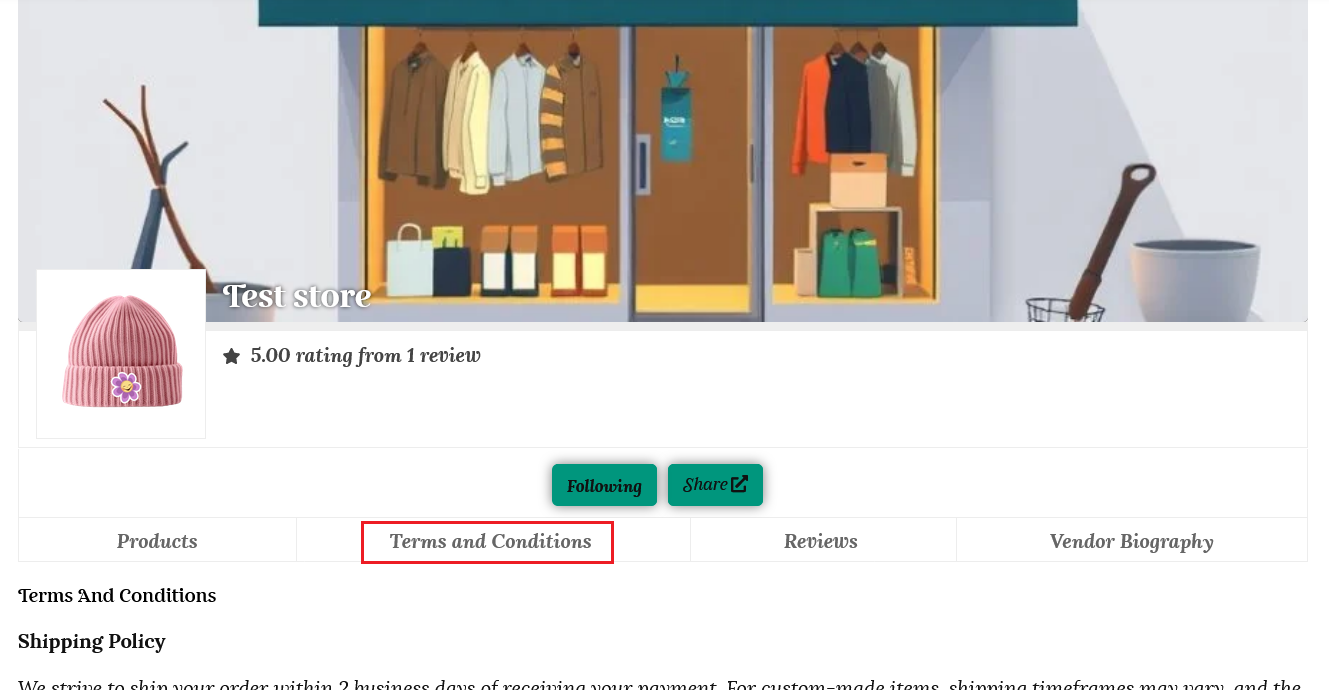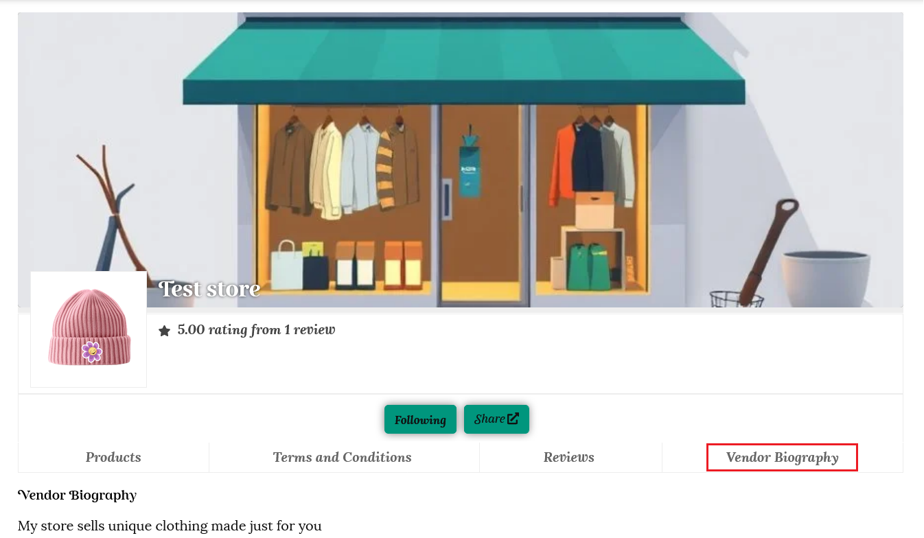 Your biography will be added to a tab on your store page.