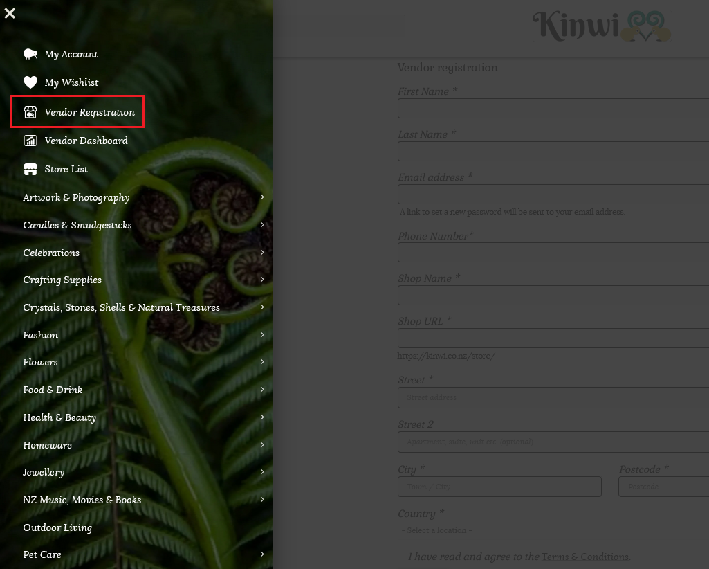 Please fill out this registration form with your details as labelled. Your shop URL will be https://kinwi.co.nz/store/name- of -your- store