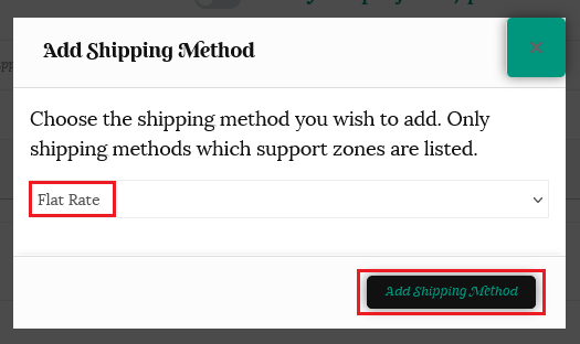 Select “Flat Rate” from the dropdown menu, then click the “Add Shipping Method” button.