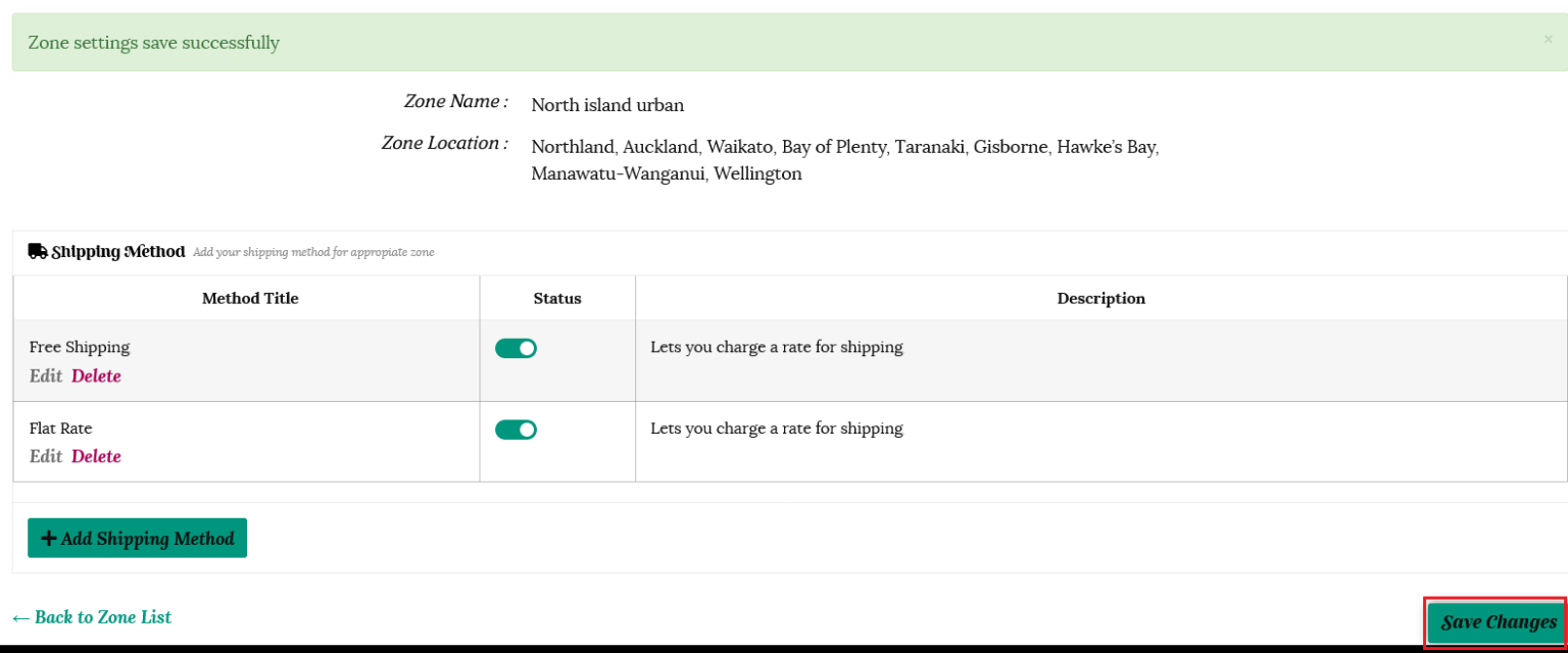 ***Don’t forget to go back to each zone and save your changes once you have completed your shipping methods.***