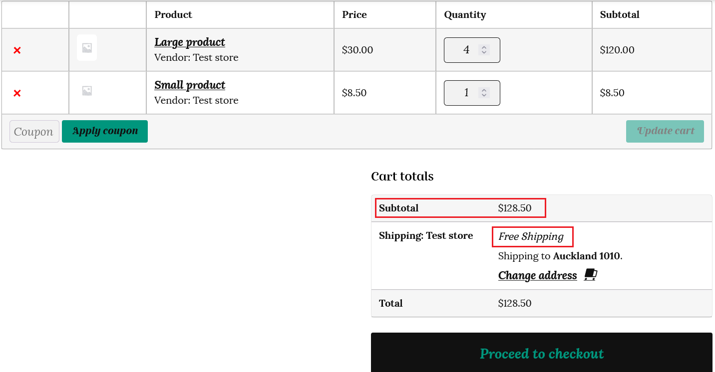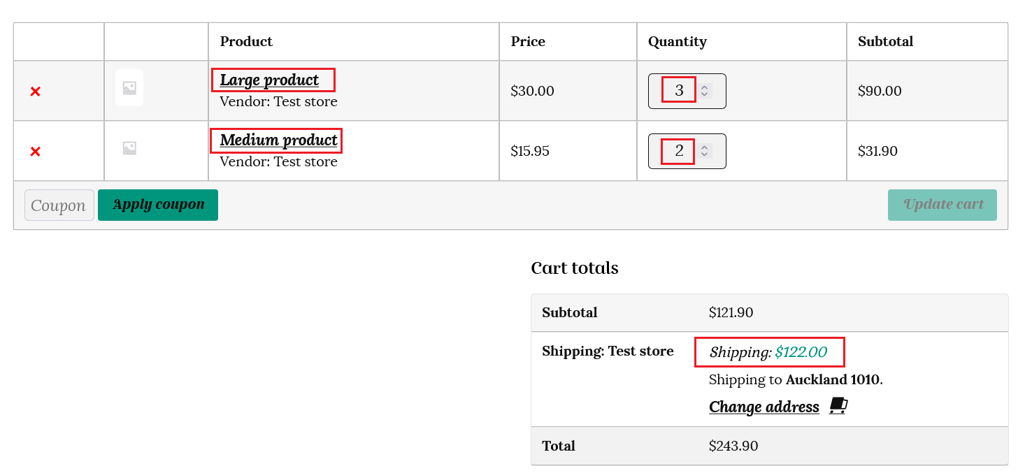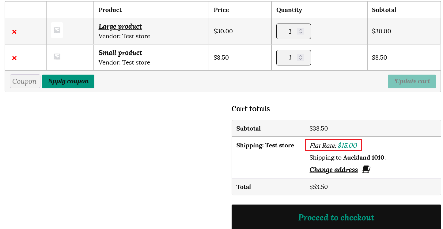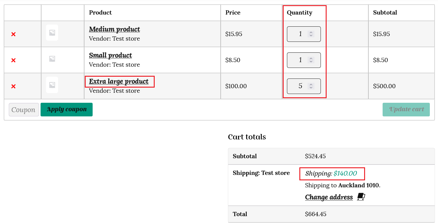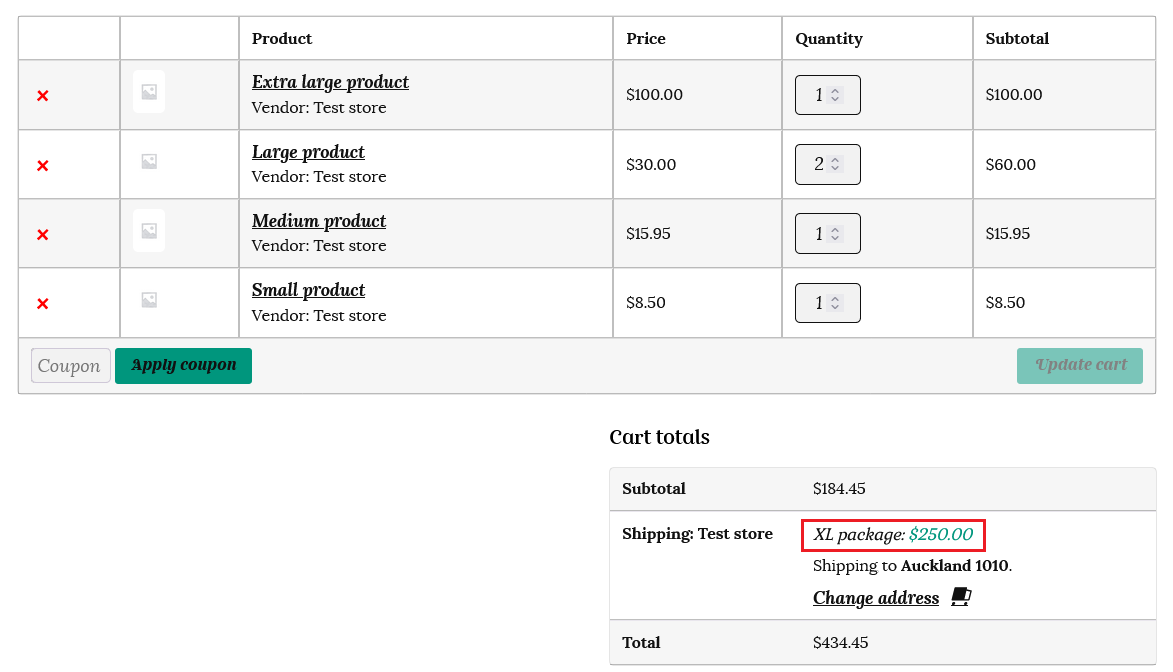 Let’s see how this shipping calculation works for the same customer at checkout.