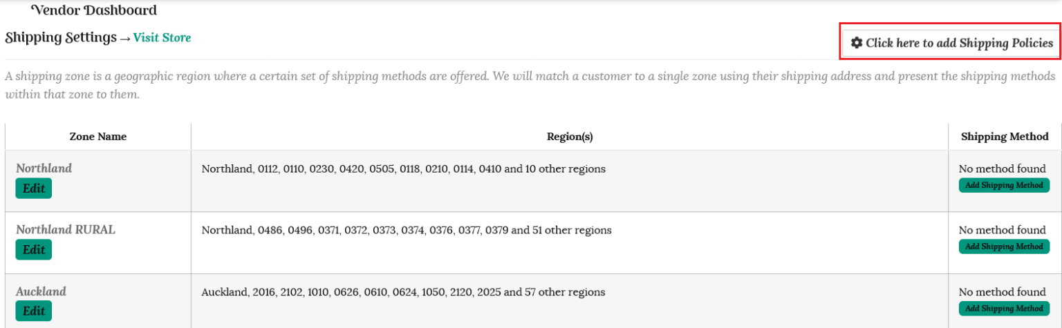 Click the button on the top right to add your shipping policies.