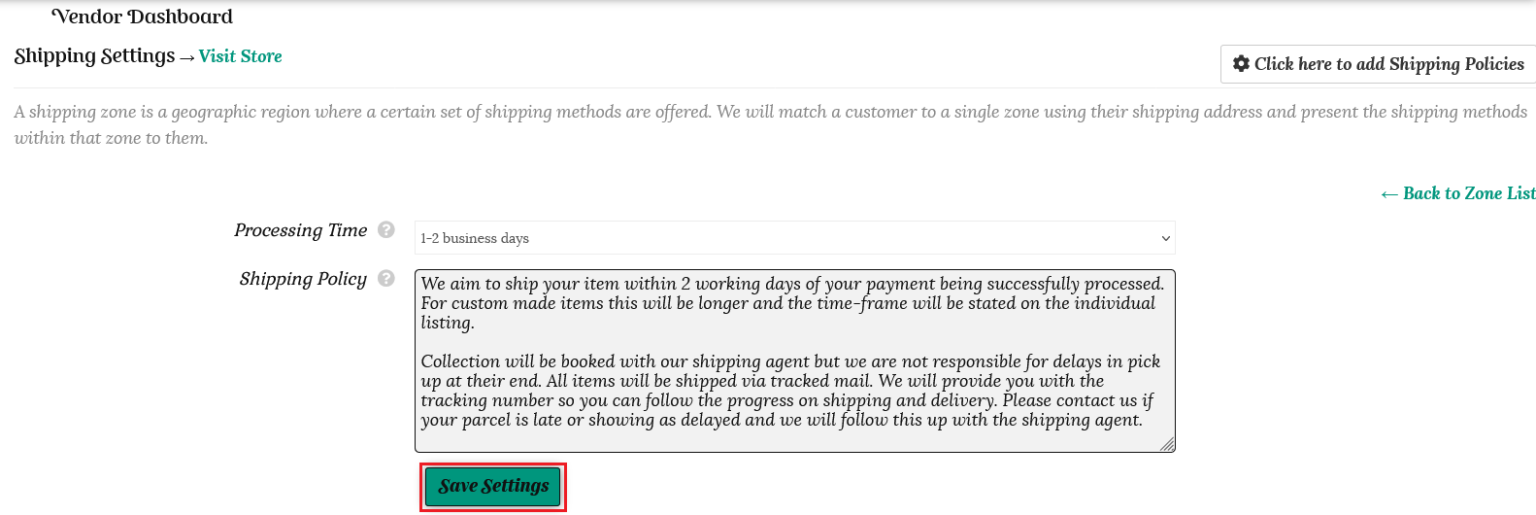If you need further assistance in setting up your shipping, you are welcome to contact us here or use the “Contact Admin” tab in your vendor dashboard. We are happy to help.