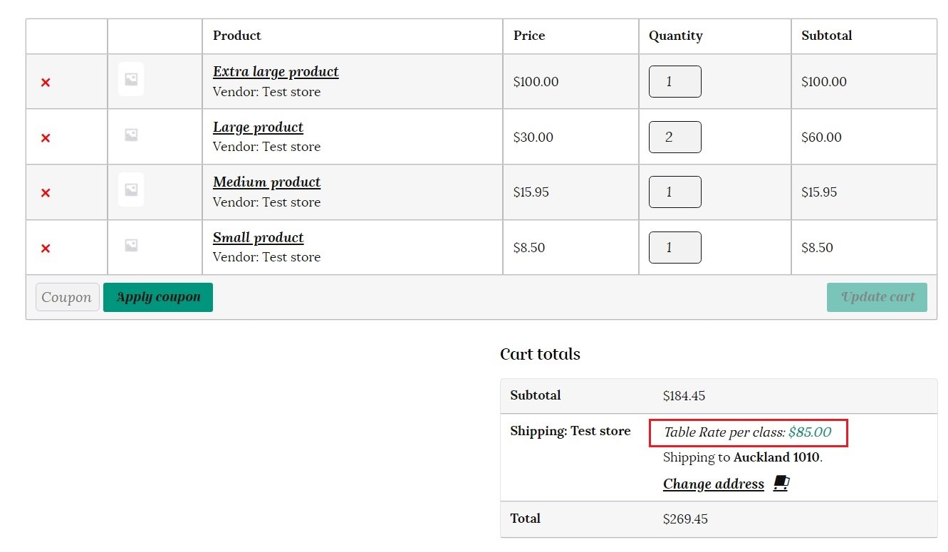 Calculated rates per shipping class – each shipping class in your basket is totaled and offered at a final rate.