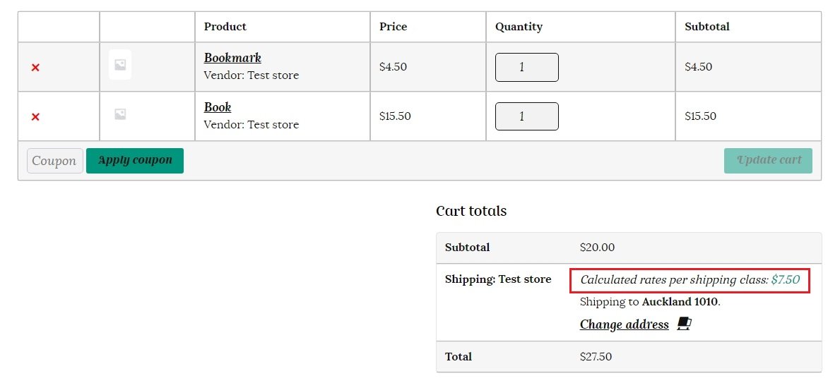 Daisy’s store sells both bookmarks and books. The bookmark is in the small shipping class, and the book is in the medium shipping class. If a customer orders a book and a bookmark then you can simply bundle this shipping together without having to charge shipping for the book and the bookmark separately.