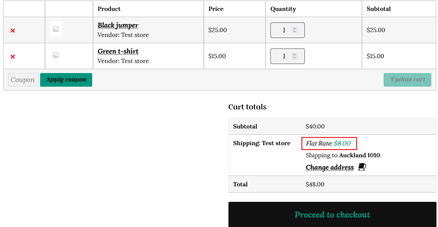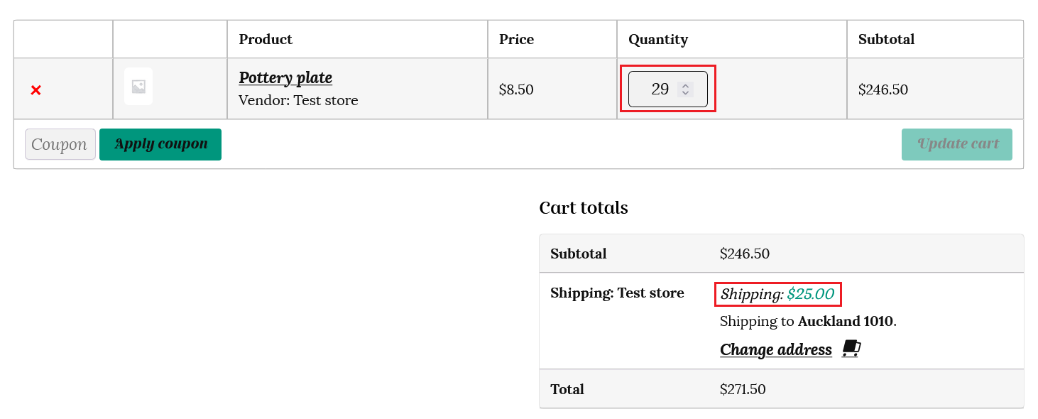 So the order shipping cost will be shown as $25 in the customer’s cart, as below.
